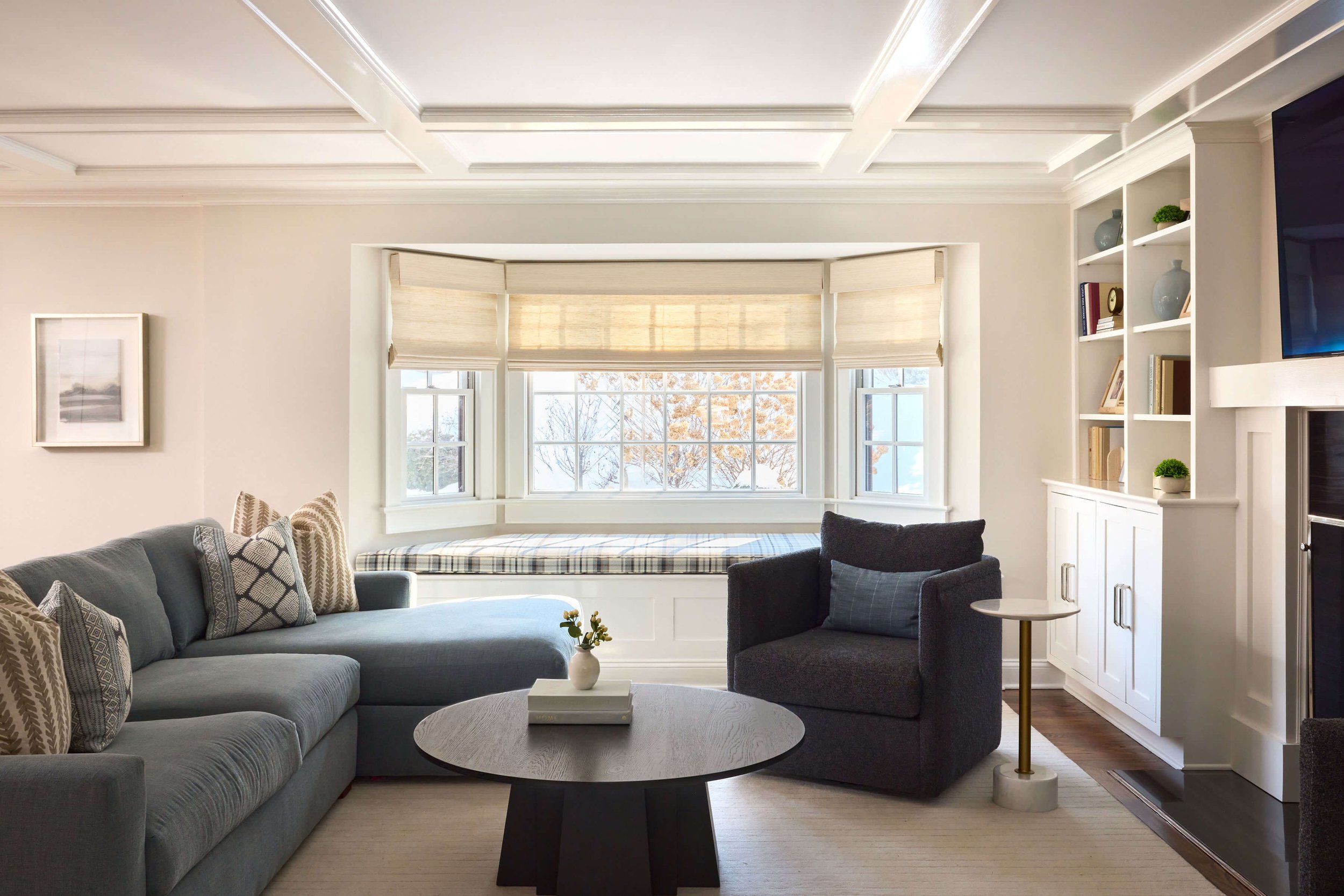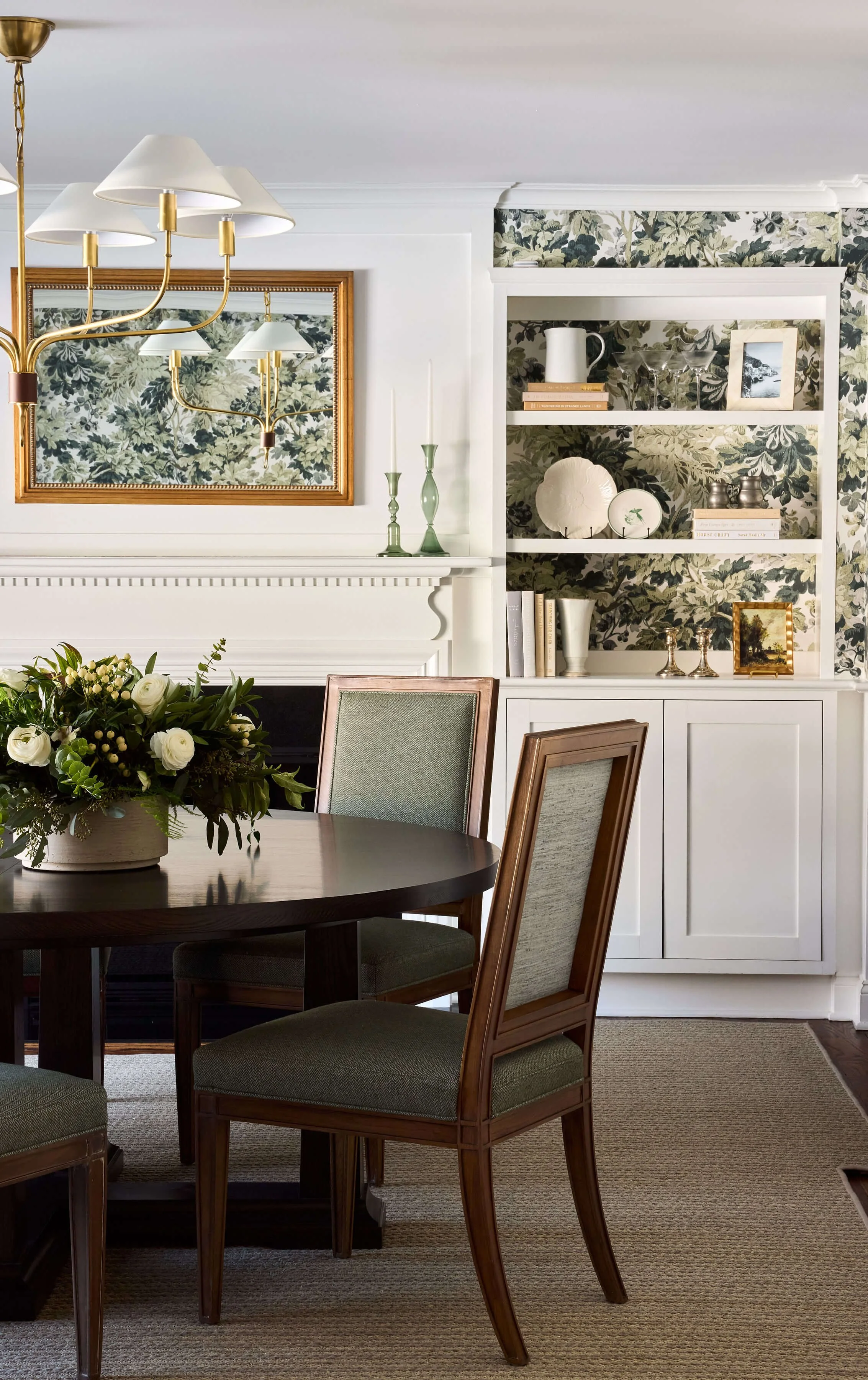 When a young family purchased this 1930’s colonial, they loved its charm but felt the interiors no longer reflected the home’s classic architecture. Grey floors, bold wallcoverings, and modern lighting distracted from the beautiful fireplaces, moldings, and built-ins that first drew them in. We were brought in to reimagine the home with thoughtful paint, finishes, and furnishings. The result is a warm and timeless environment that restores harmony between the home’s original details and the rhythm of modern family living.
